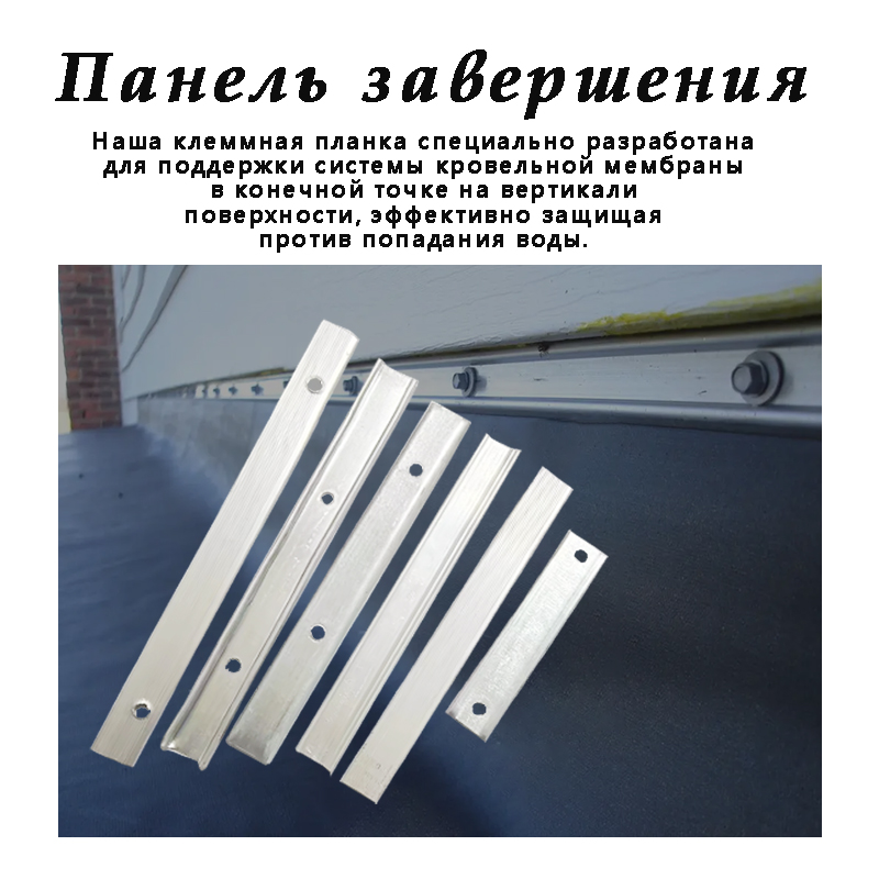 Наша соединительная планка специально разработана для поддержки системы кровельной мембраны в точке ее окончания на вертикальных поверхностях, эффективно защищая от проникновения воды. Изготовленная из экструдированного алюминия премиум-класса, клеммная планка обеспечивает непревзойденную долговечность и надежность.