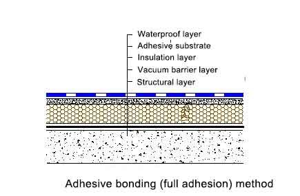 2. Процесс монтажа методом полной адгезии: очистка основания → нанесение разметочных линий → нанесение клея на основную поверхность → укладка рулонного материала → перекрытие рулонного материала → усиление стыков → отделка → приемочный контроль.