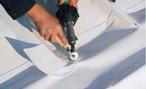 Существует три метода монтажа ПВХ-мембран: механическая фиксация, полная адгезия и свободная укладка. Швы свариваются методом сварки горячим воздухом.