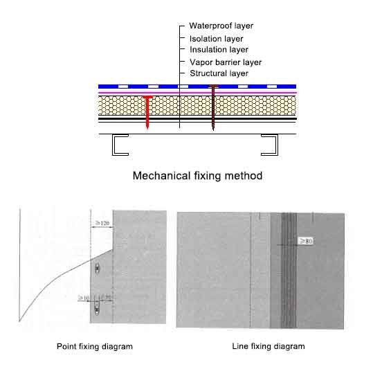 Укладывая теплоизоляционные плиты на слой стальной кровли, а затем используя водонепроницаемую ПВХ-мембрану, можно сформировать полный водонепроницаемый слой на внешнем слое исходной кровли, тем самым повысив водонепроницаемость стальной кровельной конструкции.