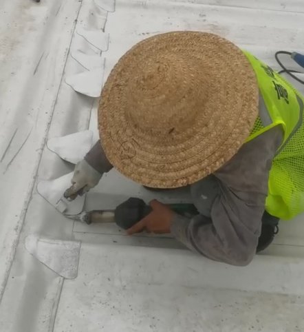Отделка стыков рулонов: Для водонепроницаемых рулонов из ТПО используйте профессиональные отделочные планки и саморезы для закрепления стыков, а затем загерметизируйте их герметиком.