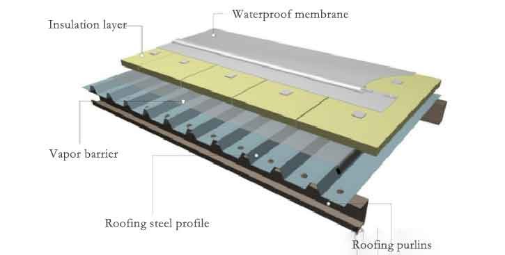 Пароизоляционный слой следует укладывать перпендикулярно гофрированию профилированного стального листа, он должен быть плоским, сплошным и неповрежденным. Ширина нахлеста должна составлять 100 мм, для склеивания следует использовать специальную клейкую ленту.